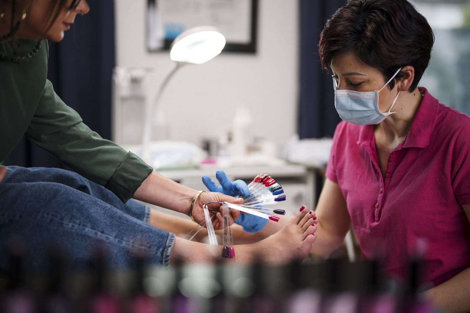 Professionelles Lackieren der Fußnägel für ein strahlendes Finish. So wirken Ihre Füße rundum gepflegt und elegant.